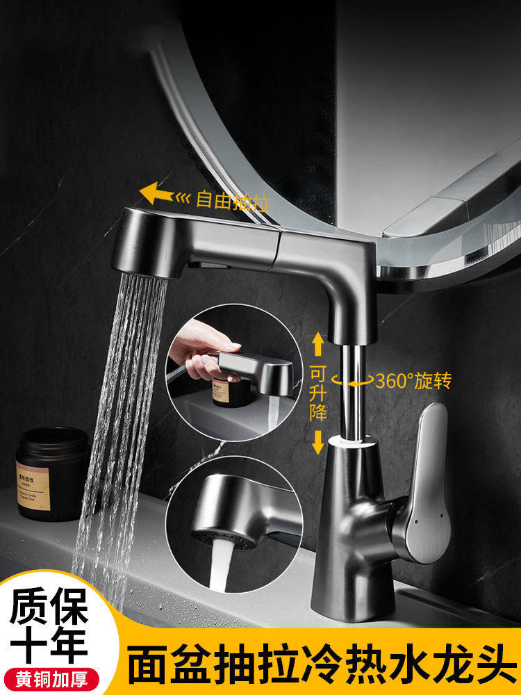 Basin faucet hot and cold pull-out faucet all-copper powder room washbasin bathroom lift washbasin household faucet