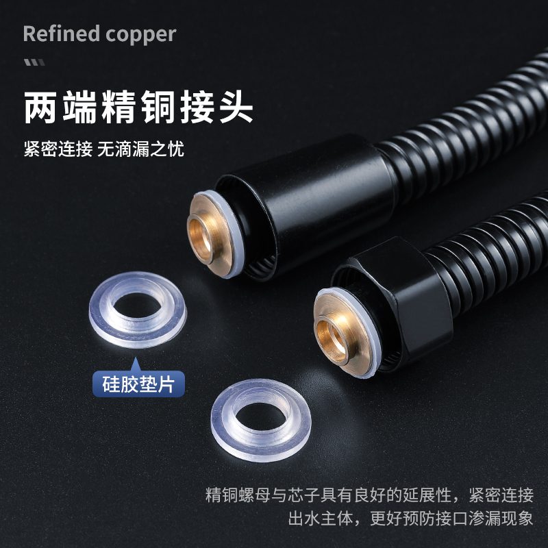 Black universal shower hose rain shower water pipe 304 stainless steel leak-proof explosion-proof water heater extension pipe