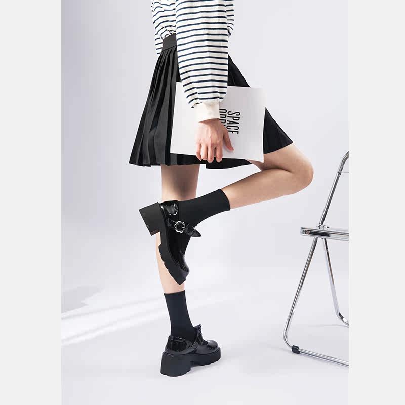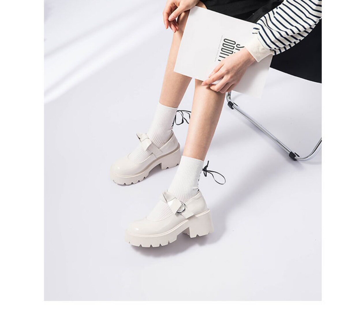Majeallure Mary shoes bow bow bow heel jk female shoes pine shoes leather white small leather shoes