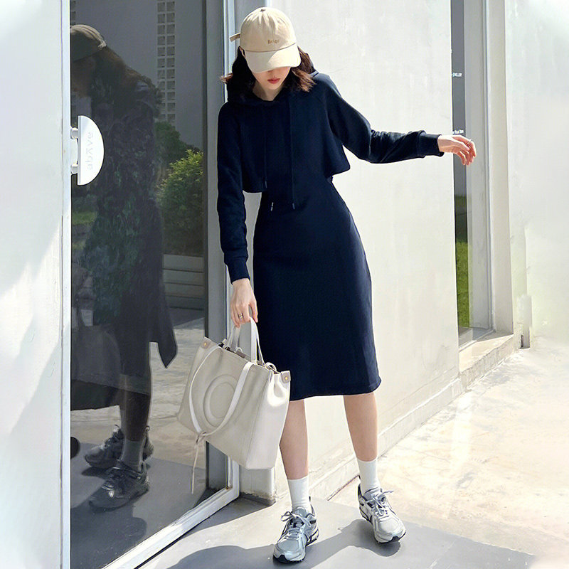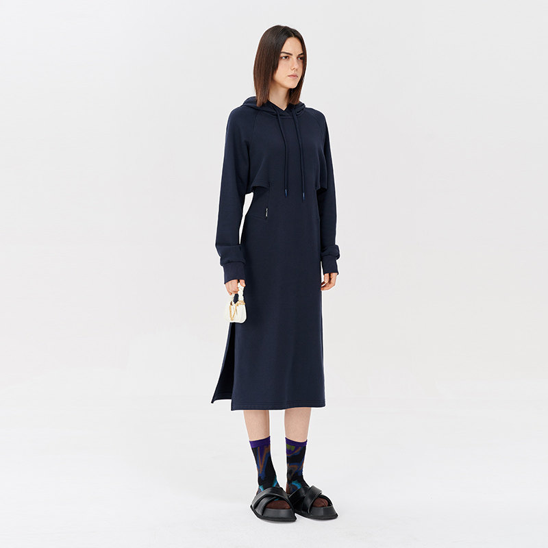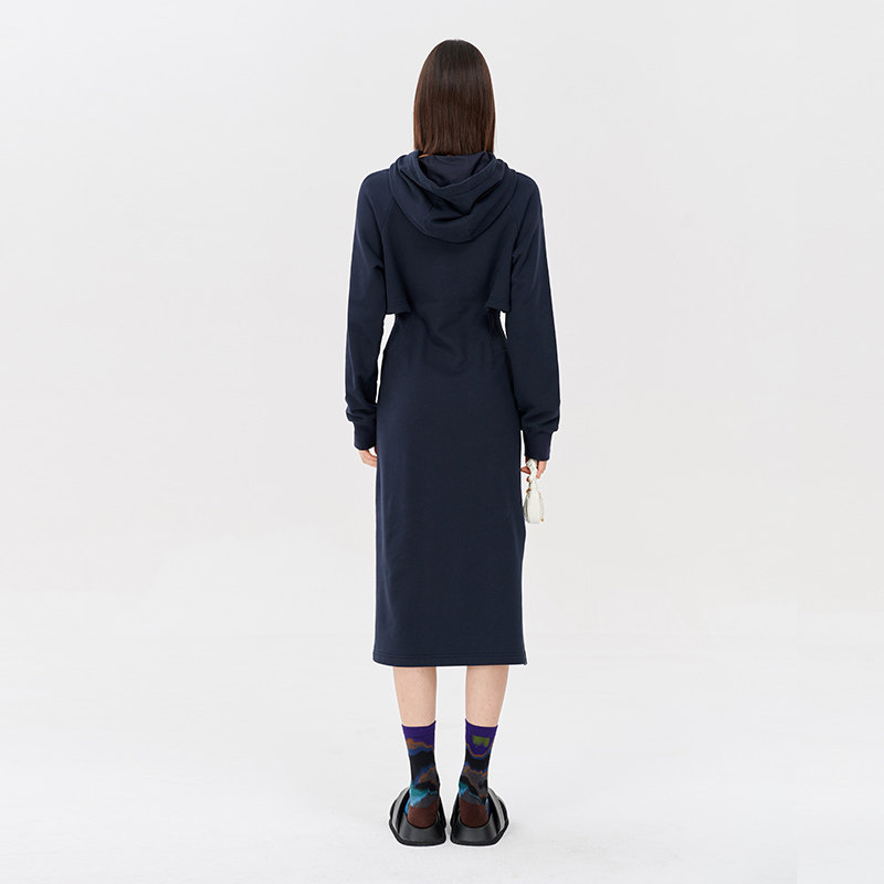 Self Who sports wind H-style necropolis dress 2023 fall new cashew with cap hollowed-out one-piece dress-Taobao