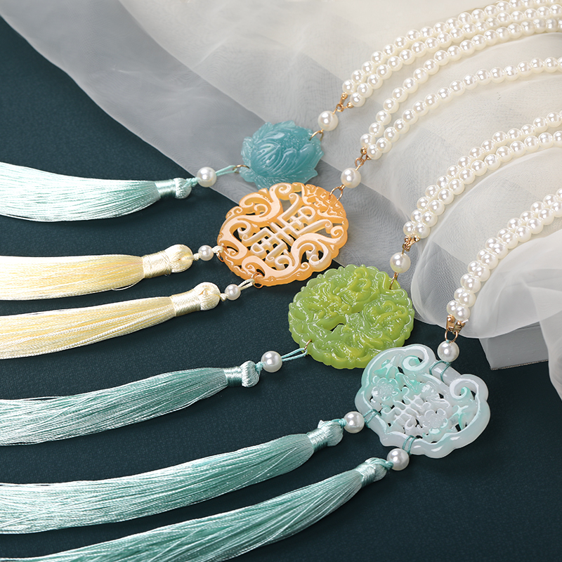 Ancient wind pendant Step long stream waist resin Yupei Palace Tapeste belt Han clothing lock rope accessories