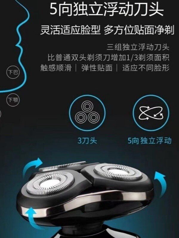 Skin care, sideburn trimming, washable, LED screen display, floating cutter head, wet and dry