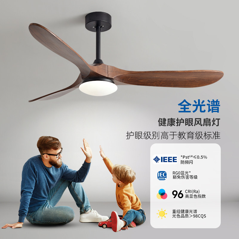 90-inch large wind solid wood ceiling fan lamp Nordic home living room commercial retro restaurant frequency conversion integrated electric fan light-Taobao