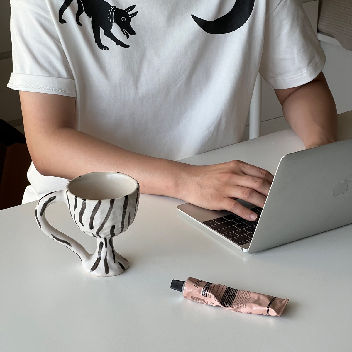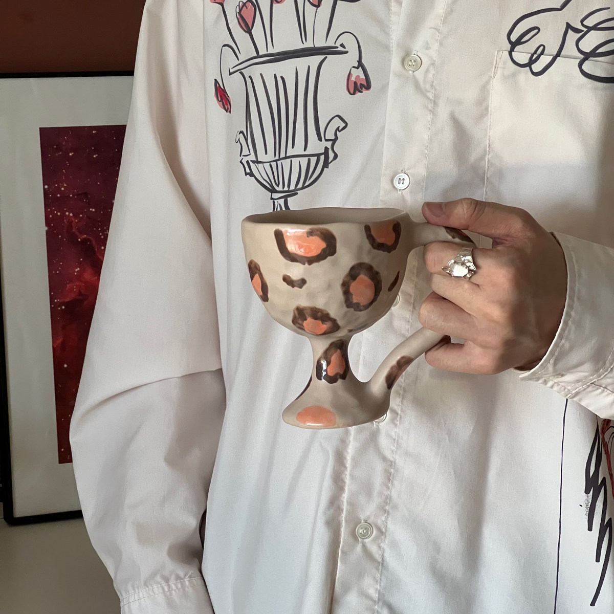 Spot AHD Small Waist Cup Handmade Pinching Korea Ins small crowdhandpainted Ceramic Mark Cup High-footed Cup Delicate Gift