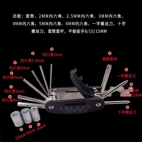 Multifunctional folding portable screwdriver inner hexagonal combination set wrench 16 in 1 bicycle maintenance wrench tool
