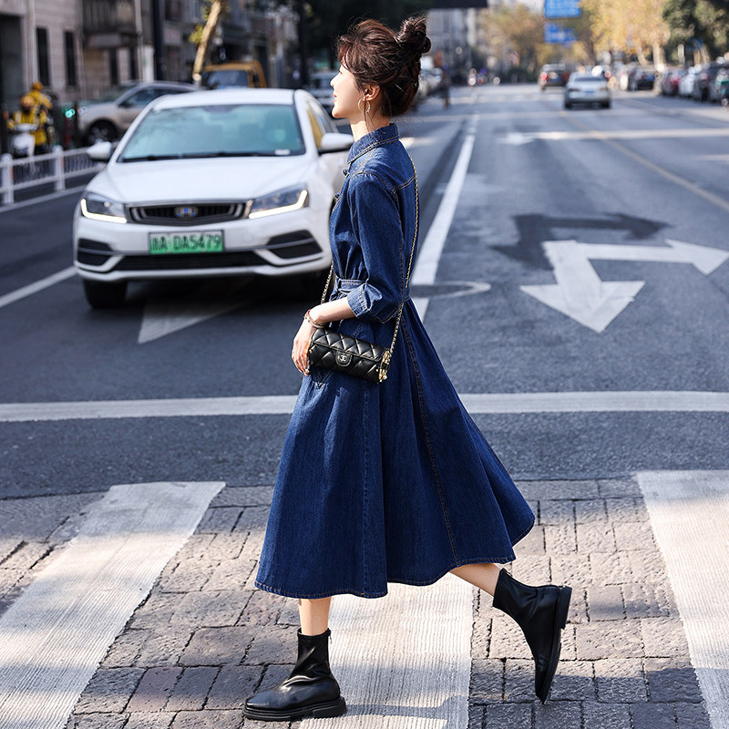 French retro jeans dress 2022 Spring and Autumn New temperament and decrease age and luxury button A - word skirt