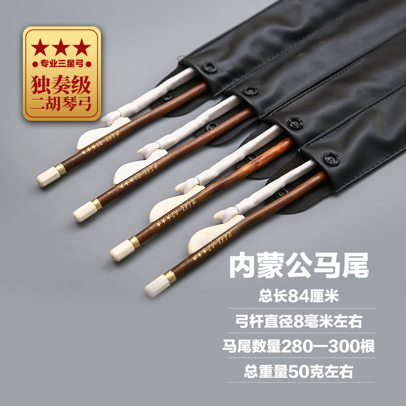 Brand mahogany erhu bow, real male ponytail, selected old purple bamboo, printed spring, three-star performance-grade erhu accessories