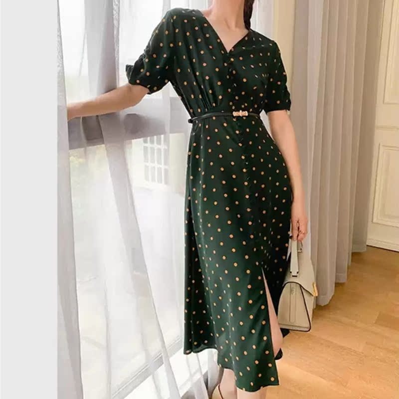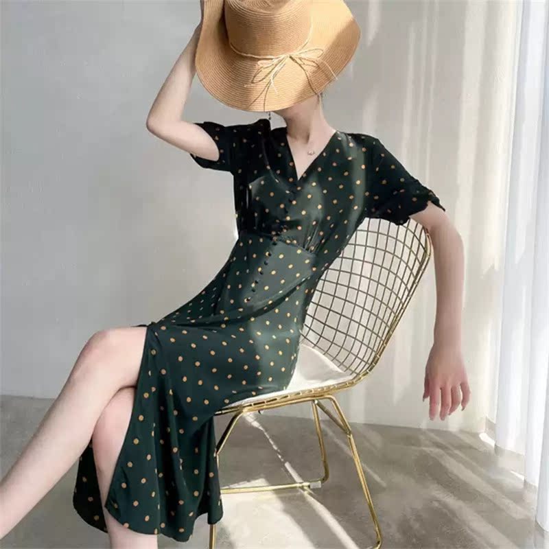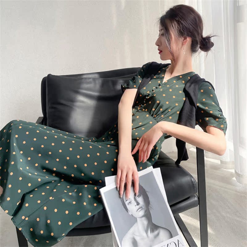 Maje mantas French literary tea break dress green polka dot high-end light luxury niche design dots
