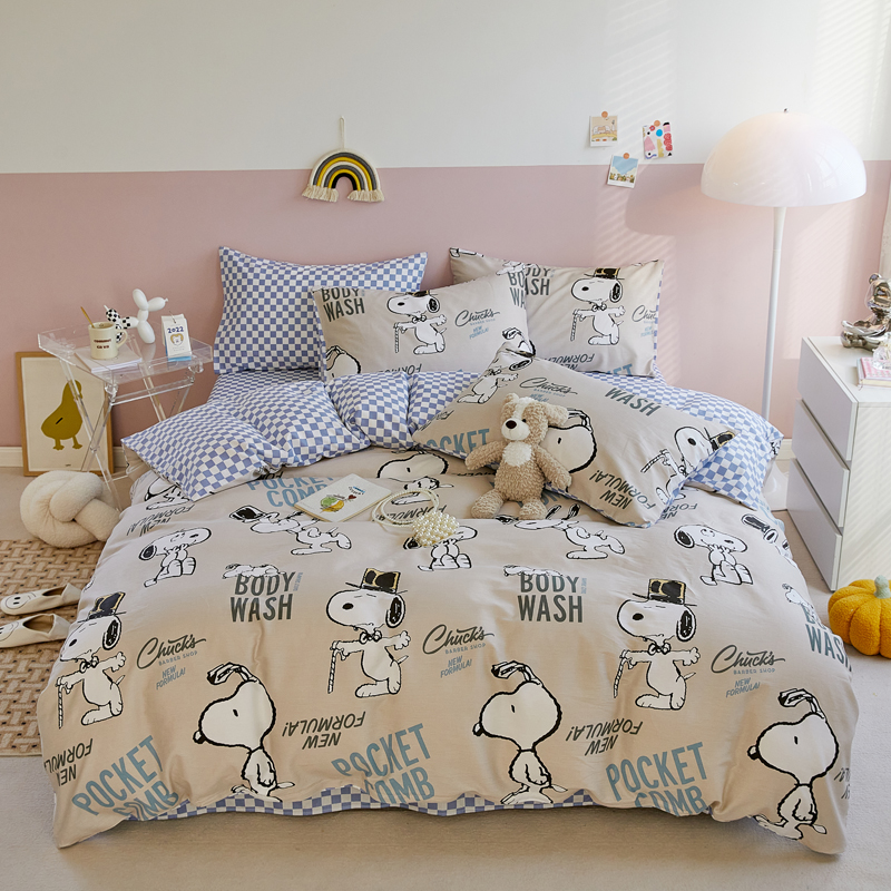 Cotton cartoon bedding four-piece set sheets cotton boy children's dormitory student quilt cover three-piece set