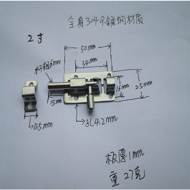 Silver 304 thickened 2-inch bolt (without screws) Silver 304 thickened 2-inch bolt (with screws)