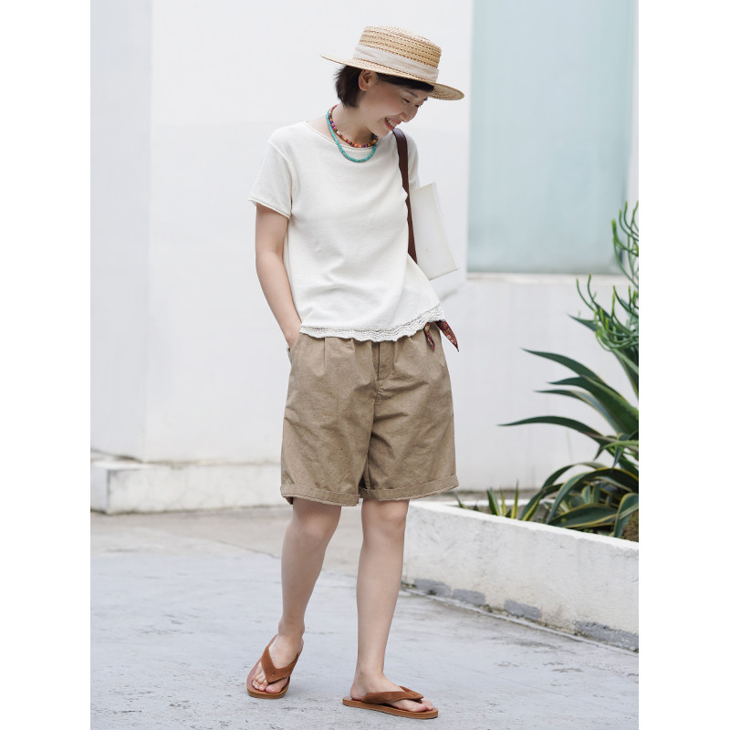 No Zenjian City Japanese Washi Organic Cotton Sand Cool and Comfortable Round Neck Rolled Short Sleeve T-Shirt (Tomorrow Morning)