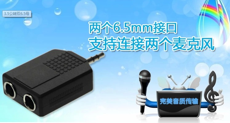 3 5 to 6 5 one-to-two connector audio adapter adapter cable male to female microphone microphone conversion head