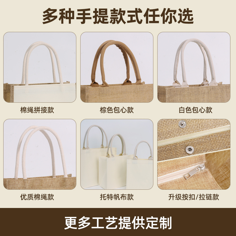 Cotton and linen splicing tote bag linen bag canvas bag shopping bag student shoulder canvas DIY custom printed logo