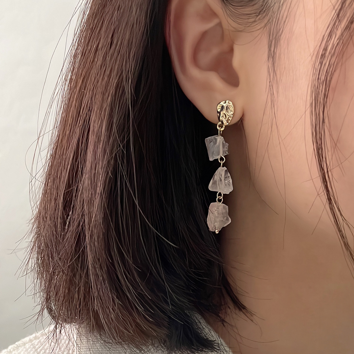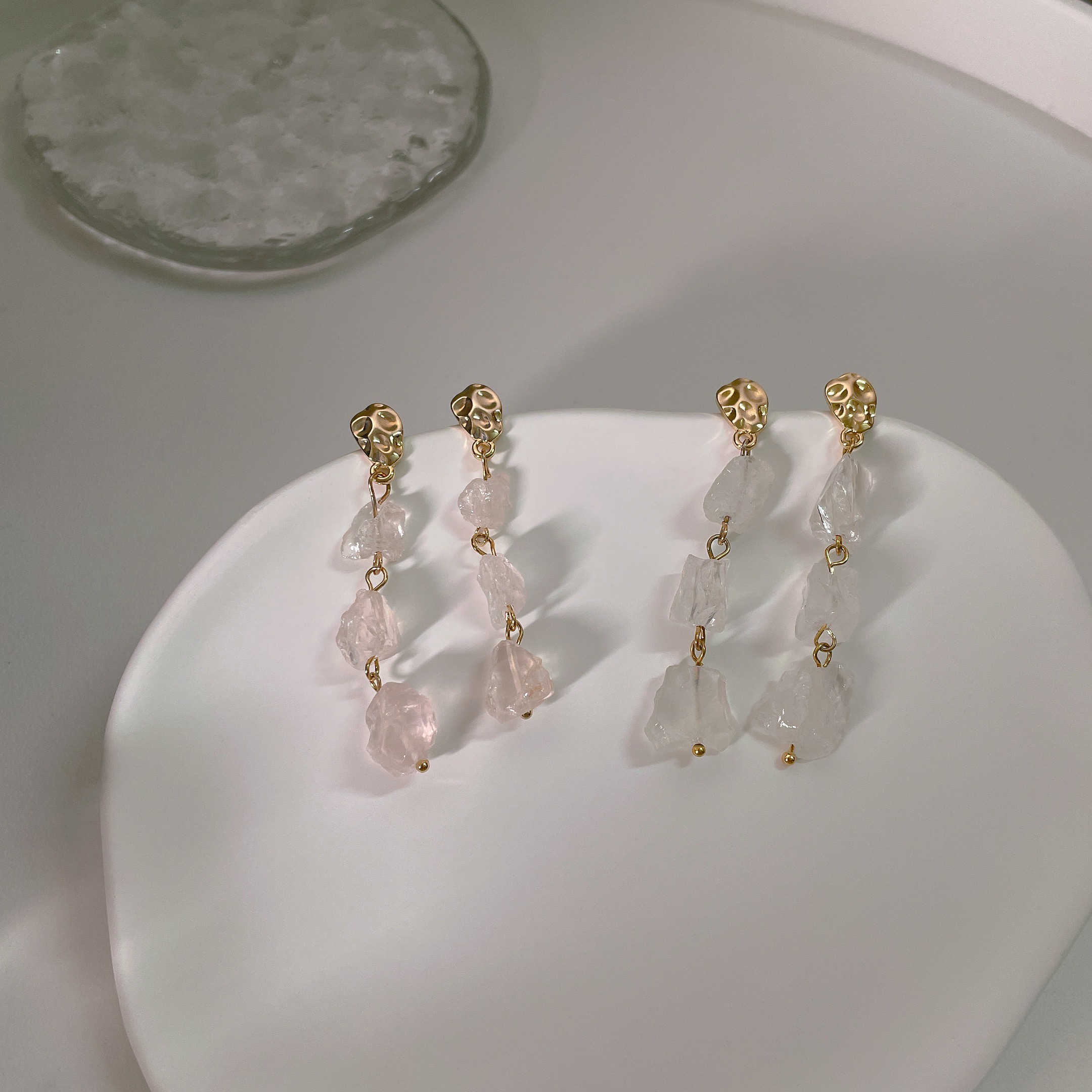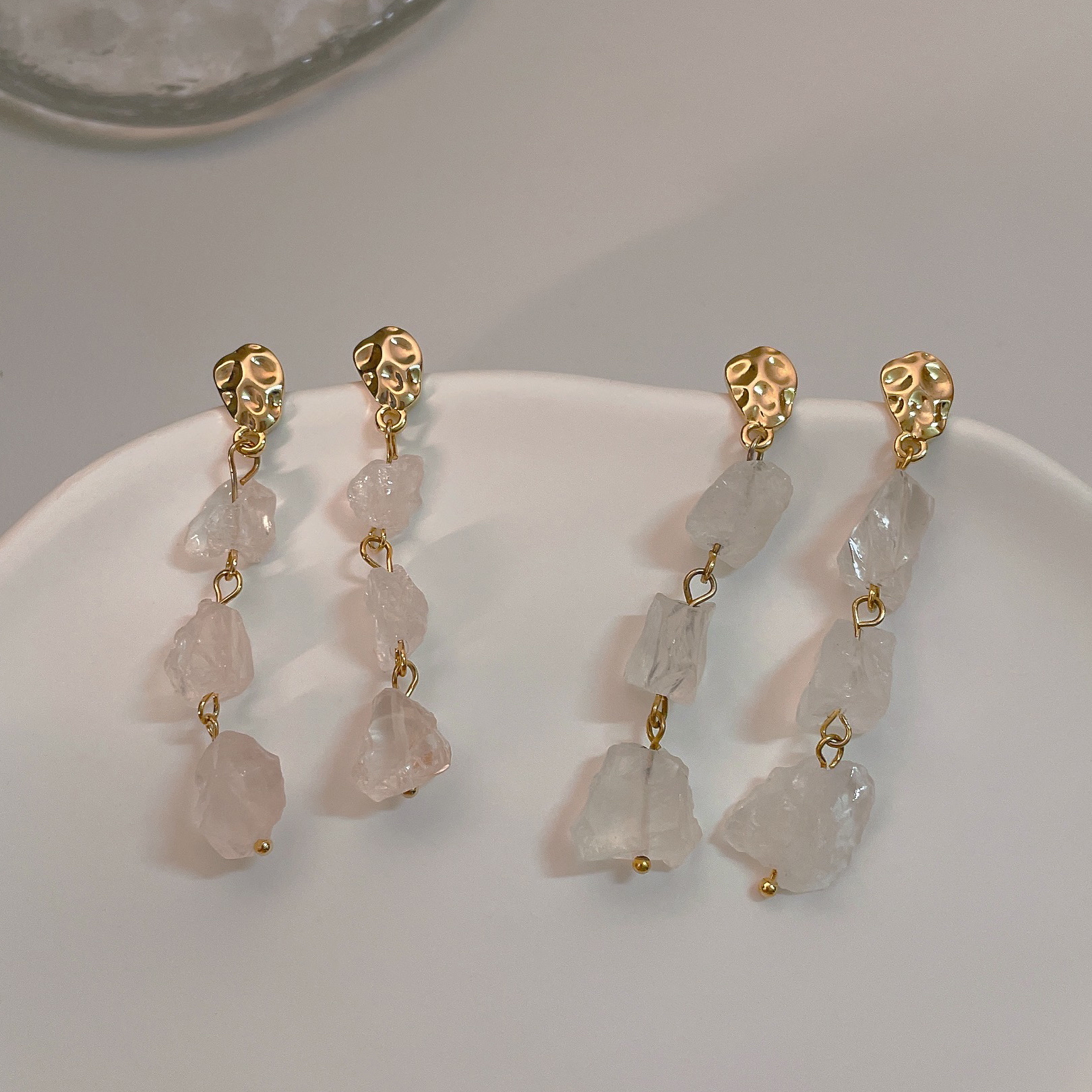 s925 sterling silver pink rock sugar pear white crystal natural stone earrings slim irregular long earrings earrings