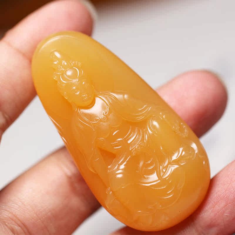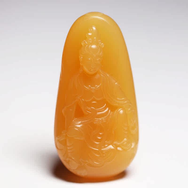 Natural Burmese topaz Guanyin pendant pendant Su Gong master Ye Hailin's works signed certificate complete orange yellow