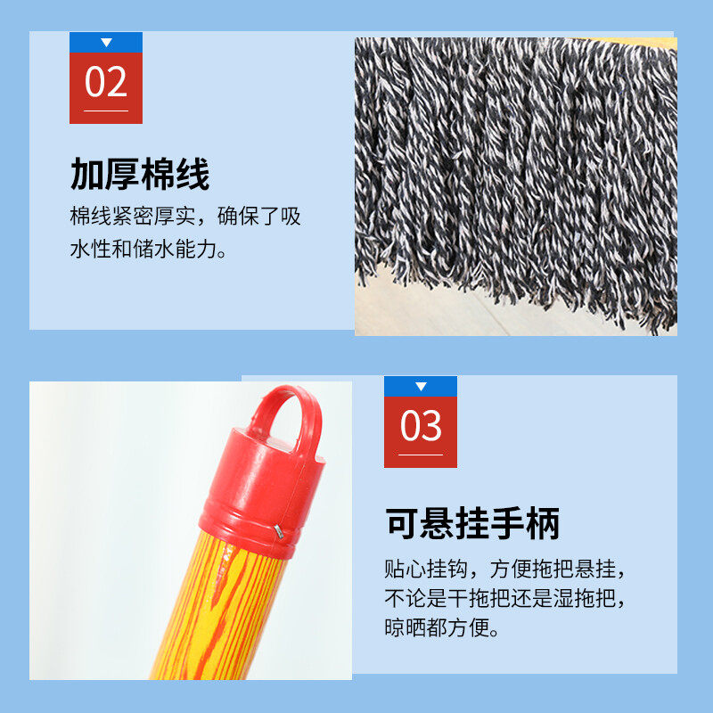 Flat mop wooden pole old cotton thread old-fashioned household mop factory cotton yarn tile mop water floor mop ordinary water mop