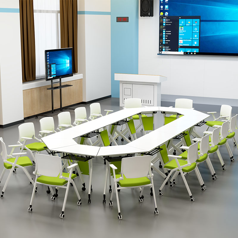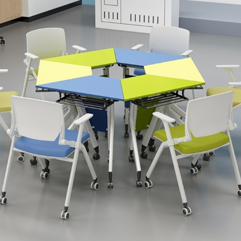 Folding training table and chairs combined mobile trapezoidal desk can splicing meeting table educational institution hexagonal desk
