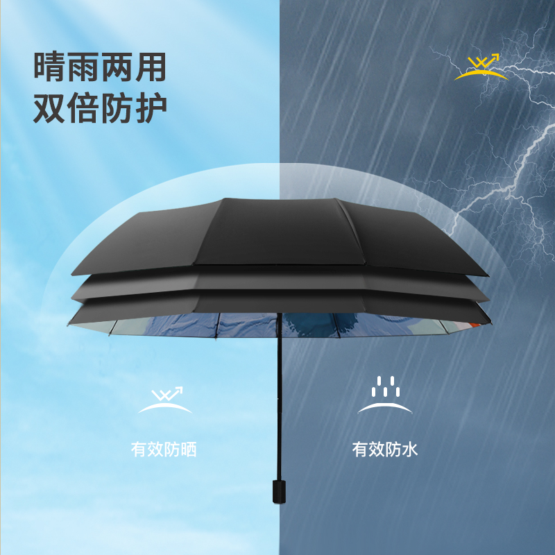 Big flower - rainy and sunny (eight-bone black glue triple sunscreen upf50 wind-resistant gold frame) Tropical small fresh - sunny and rainy dual-use (eight-bone black glue triple sunscreen upf50 wind-resistant gold frame)