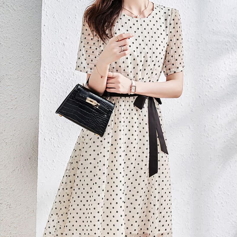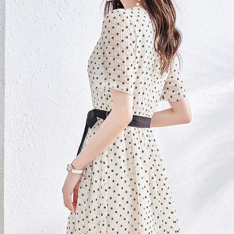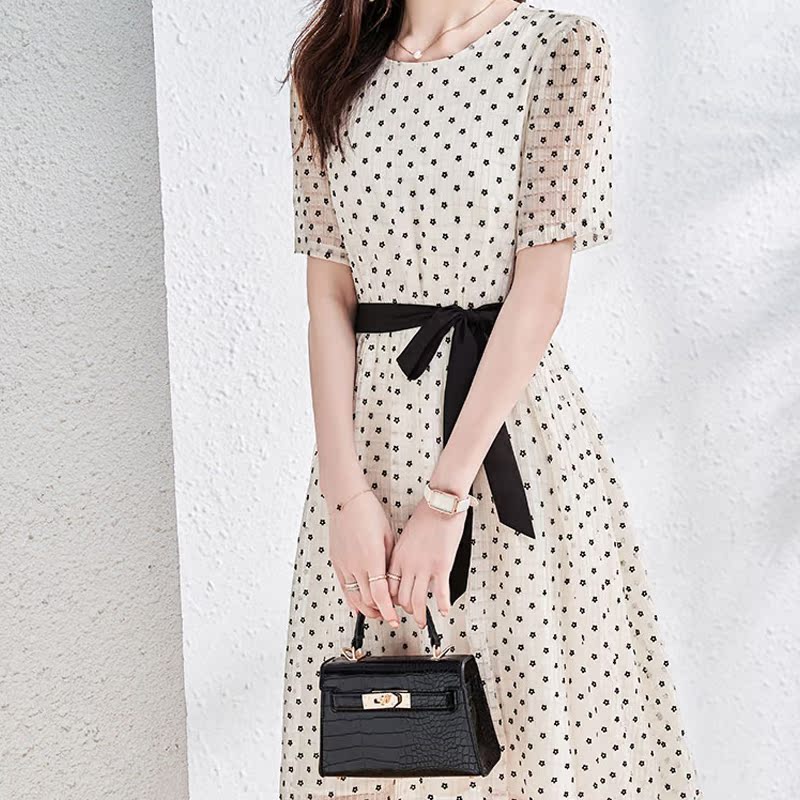 Maje mantas French retro dress white polka dot pullover short sleeve round neck lady casual dress