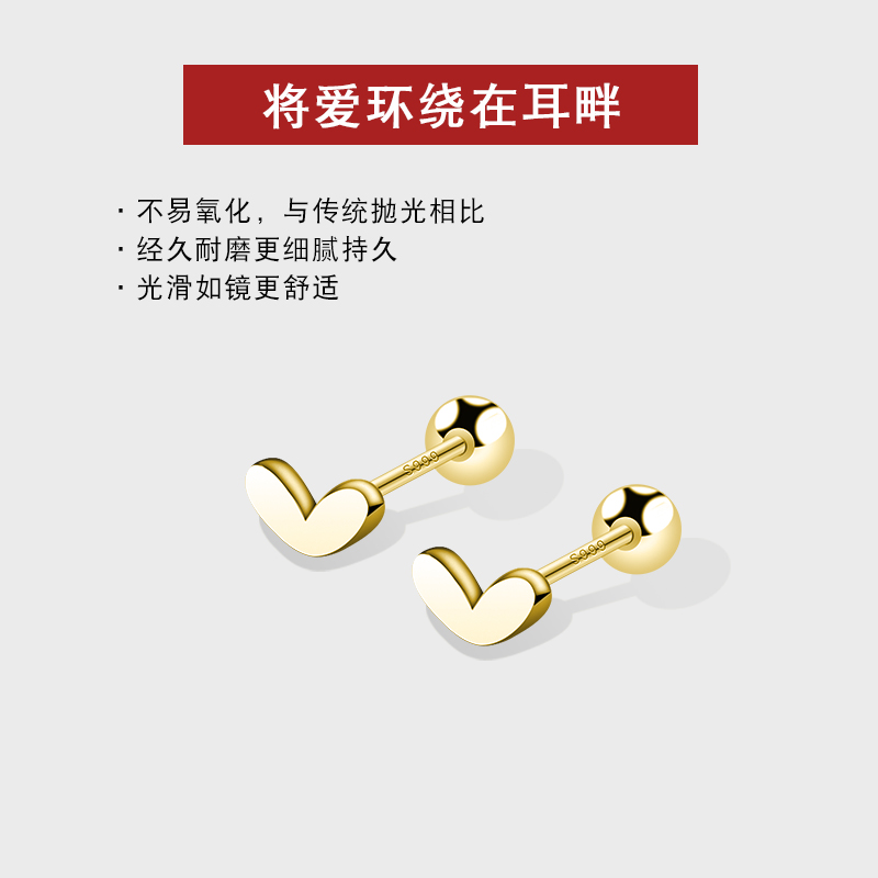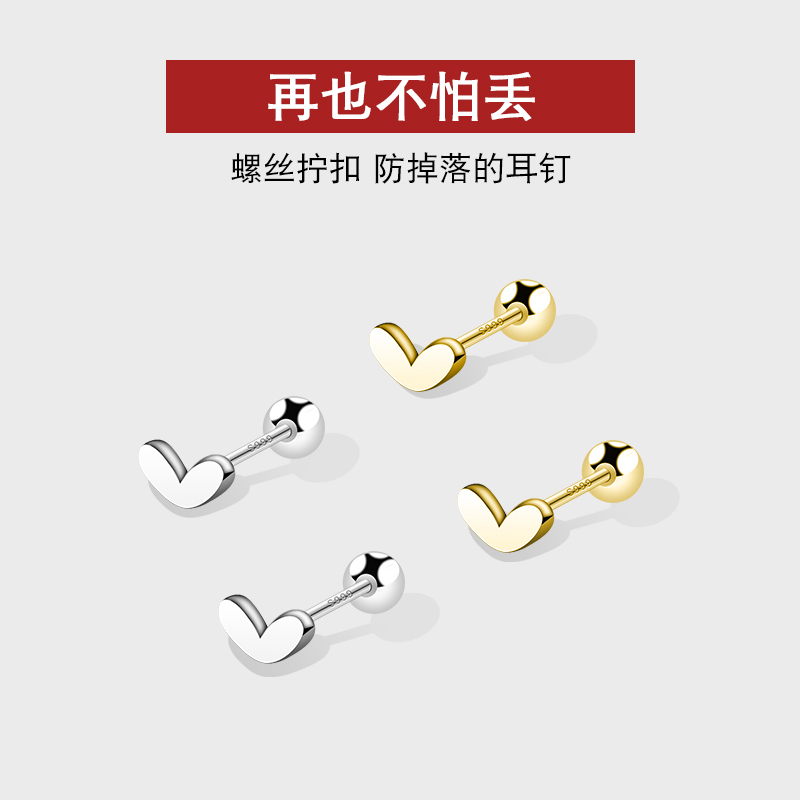 (999 pure silver) silver small love screw earrings (single price) (999 pure silver) gold small love screw earrings (single price) (999 pure silver) silver small love screw