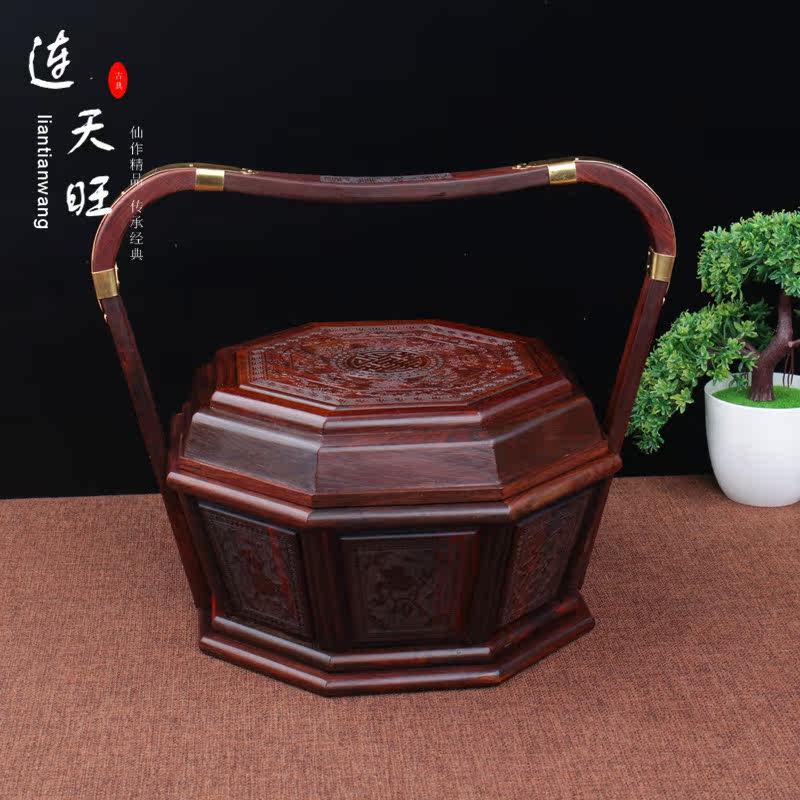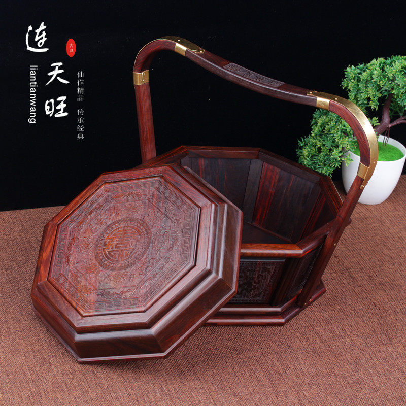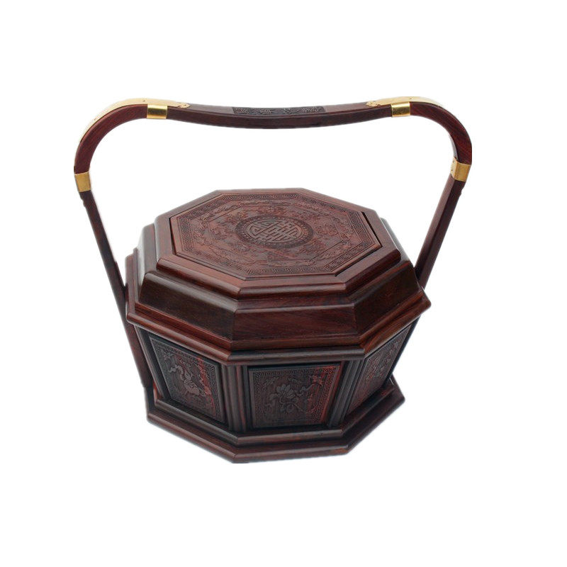 Lao Great Red Acid Branches Lift Basket Red Wood Basket Carry-on Basket Mid Autumn Delivery Gift Mooncake Ti Box Carved Meal Kit Box Snack Box