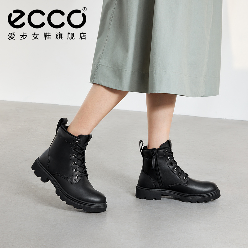 ECCO Love steps Gardown Martin boots Women Black Inn Wind 6 holes thick bottom outdoor tooling boot renovation 214723-Taobao
