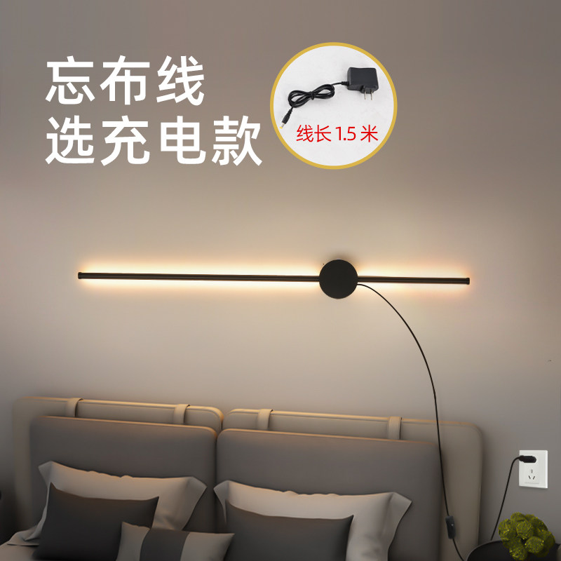 Minimalist long strip wall lamp rechargeable wiring-free TV background wall simple wall lamp living room bedroom bedside atmosphere lamp