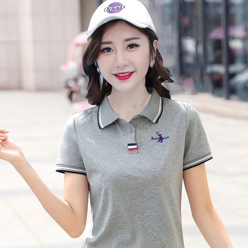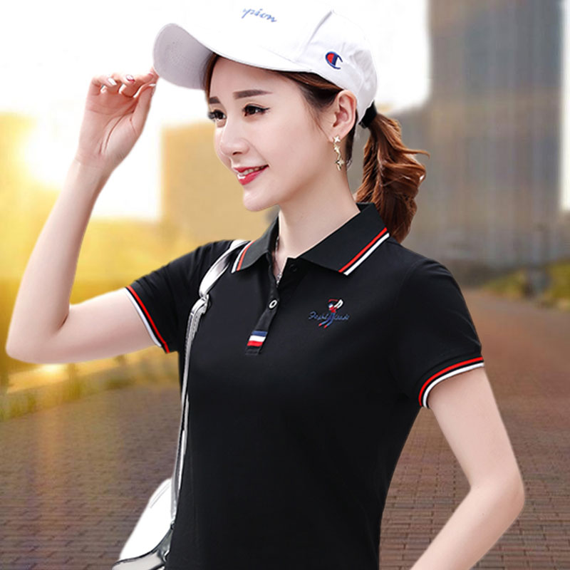 Polo shirt collar short-sleeved t-shirt top women's fashion Western style summer cotton large size 2022 new small man