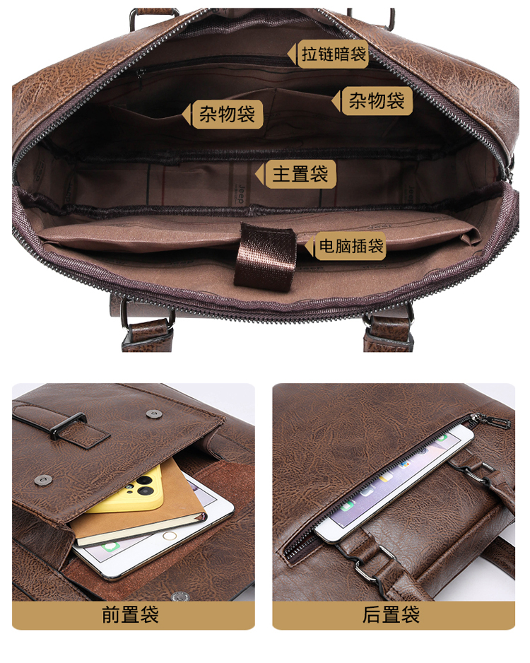 Men's Handbag Hand Holding Briefcase Genuine Leather Texture Business Casual Shoulder Bag Diagonal Men's Leather New Computer Bag