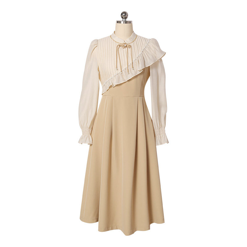 Early autumn high-end light lavish temperament name Yuanyuan Gentle Wind Retro Ancient Tea Hysteria with dress goddess Gauguin tall dress-Taobao