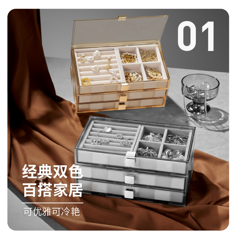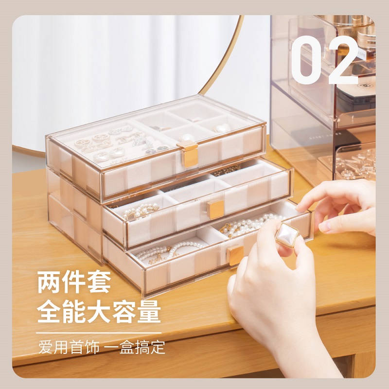 Star gray jewelry storage box - set of two Star gray jewelry storage box - double layer Star gray jewelry storage box - single layer light amber Jewelry storage box - set of two light amber