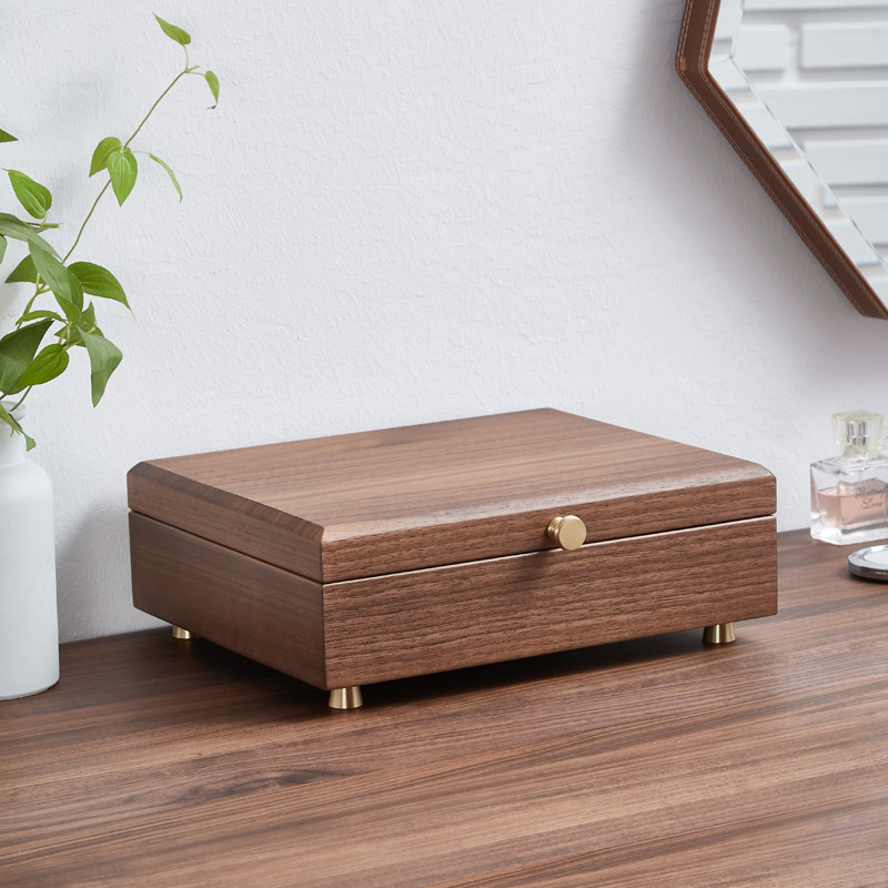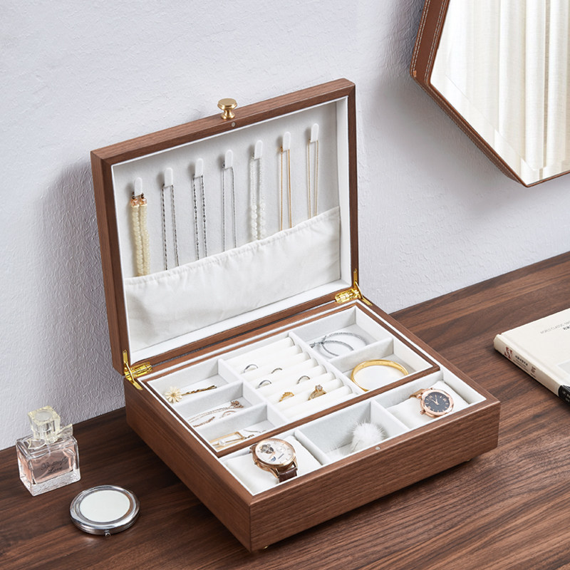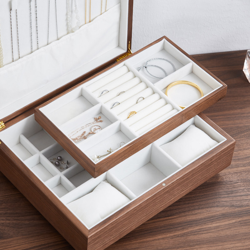 High-grade double-layer black walnut jewelry box 2022 new large-capacity ring jewelry necklace storage box jewelry box