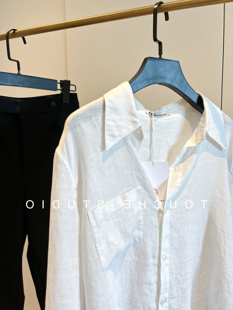 White (doll-shirt blouses summer ladies not to spring long sleeves senior feel fashion foreign pistachio Summer spring autumn lady temperament retro loose gentle and sweet and fresh)