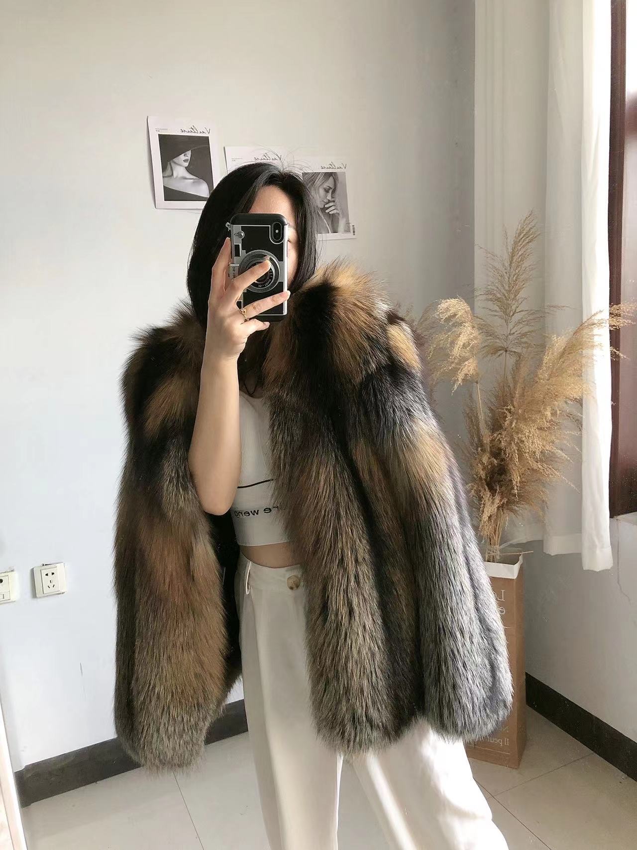Imported Finnish Phnom Penh Fox Coat Imported Fox Fur Cover Golden Cross Fox V collar can be customized