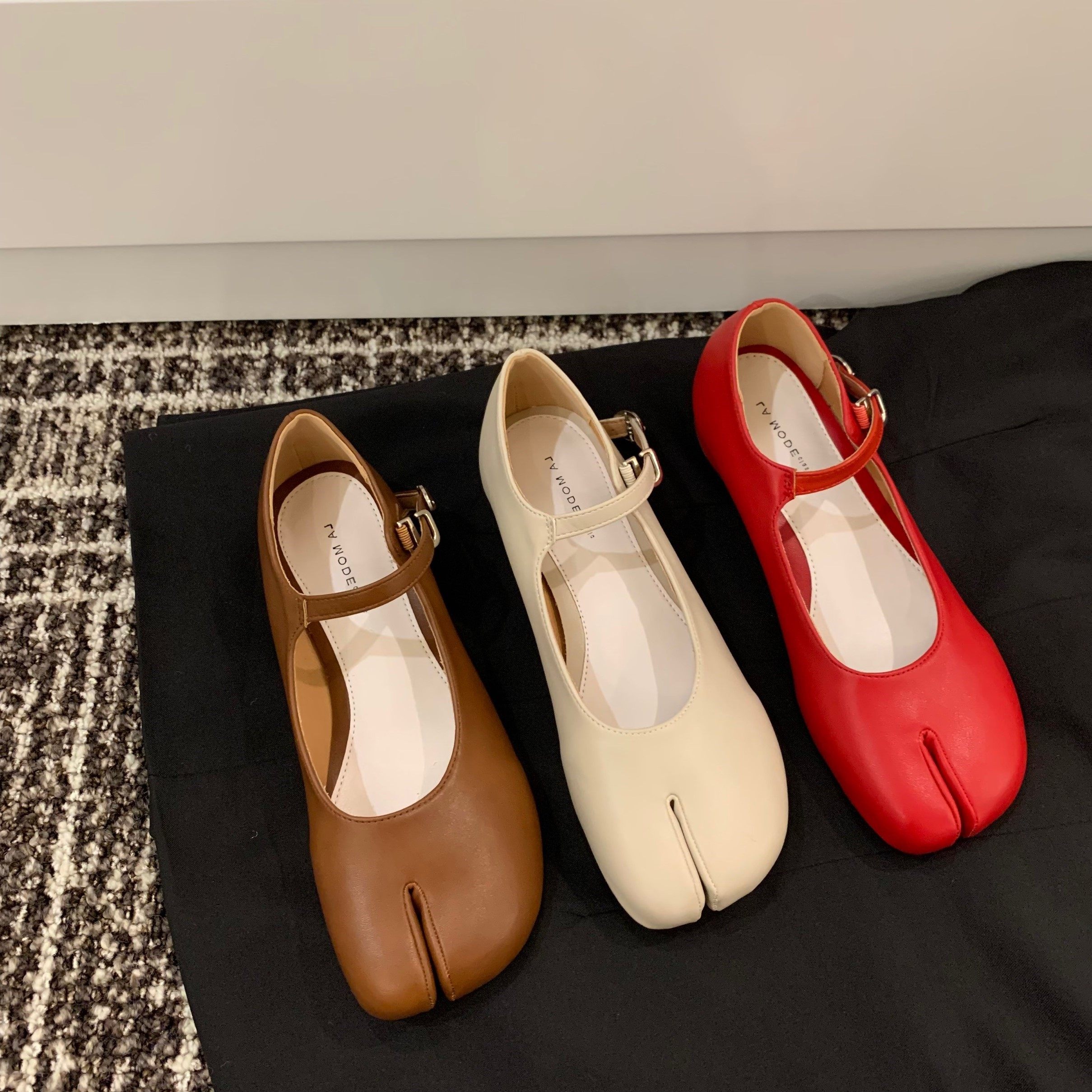 Soft cute pig's trotter~ITSK single shoes women's flat-bottomed lazy casual pig's trotters split-toed shoes Mary Jane shoes