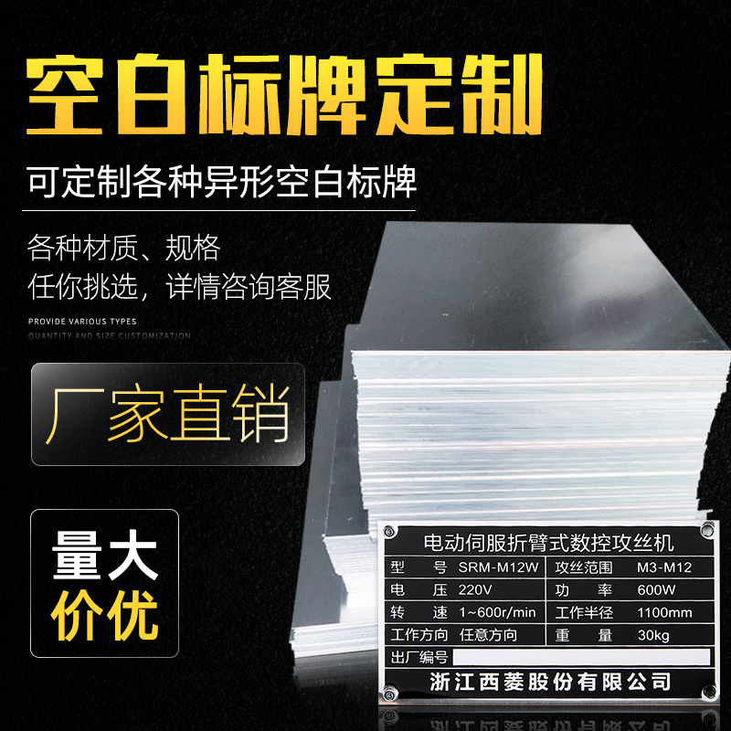 Set as blank nameplate Corrosion Laser Lettering lettering Blank Black Metal Aluminum Plate Silk Printed Stainless Steel Panel Motor Machine Tool Trademark Aluminum Alloy Uv Print Logo Customisation-Taobao