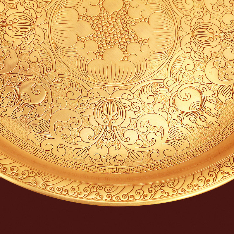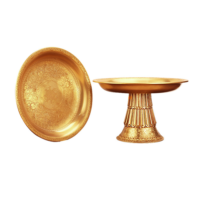 Huibao pure brass carving for fruit pastry plate Tibetan auspicious manza tea tray tribute plate home for Buddha multi-purpose tray