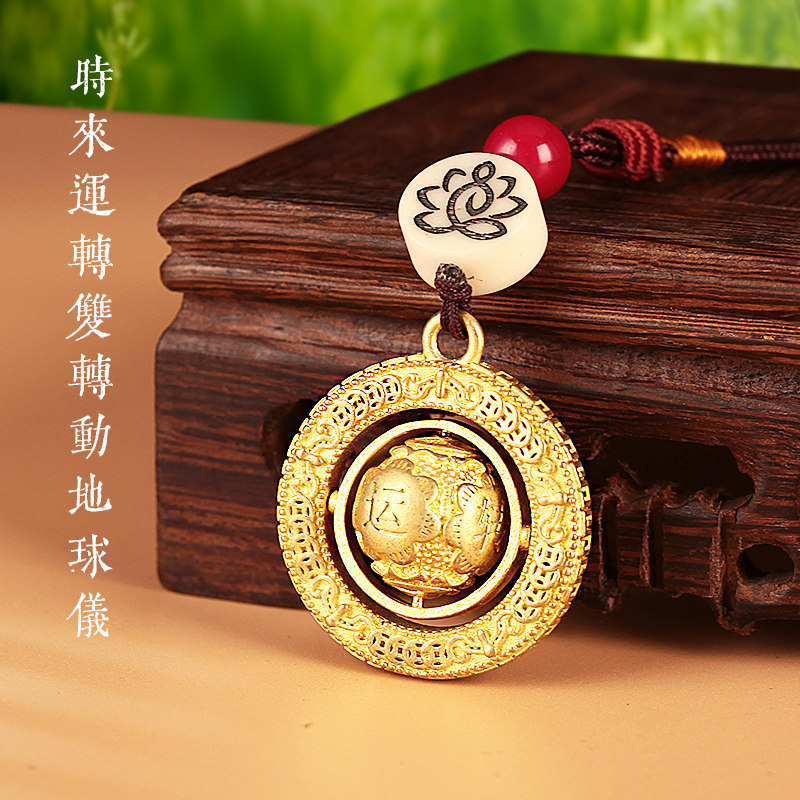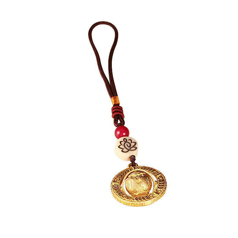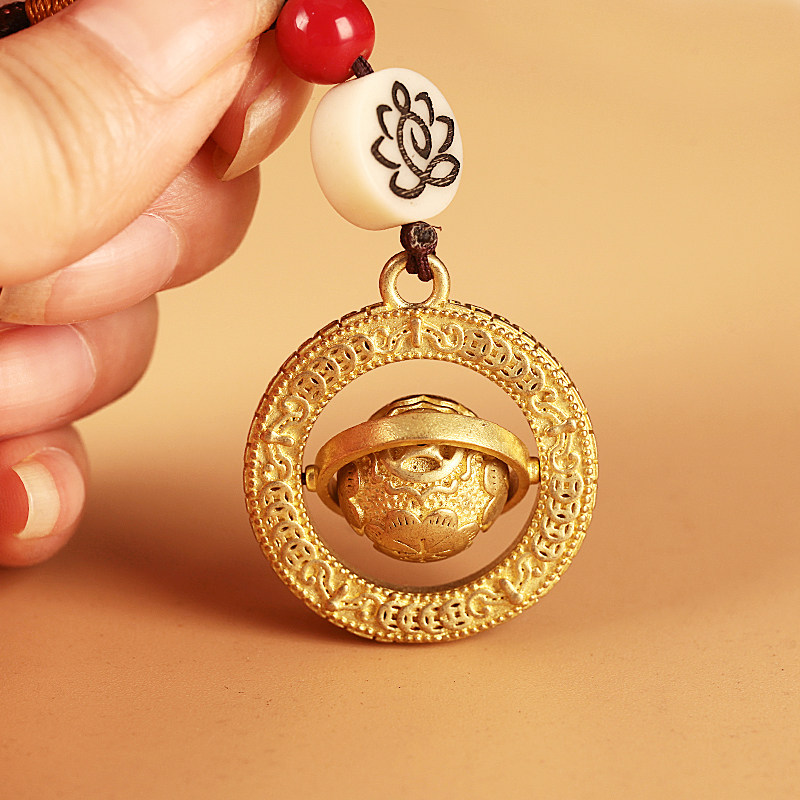 Tibetan supplies Antiquity Globes Key Hanging Car Hanging Package Rotate to Run Pure Copper Pads