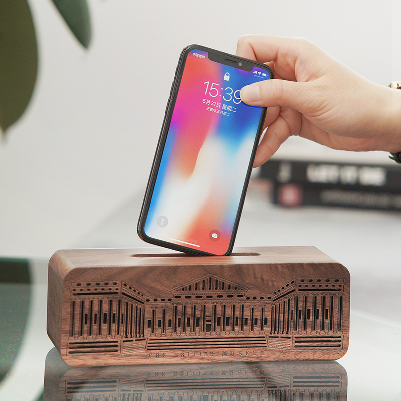 British Museum Building Series Mobile Phone Stand Walnut Amplifier Creative Ornament Birthday Teacher's Day Gift
