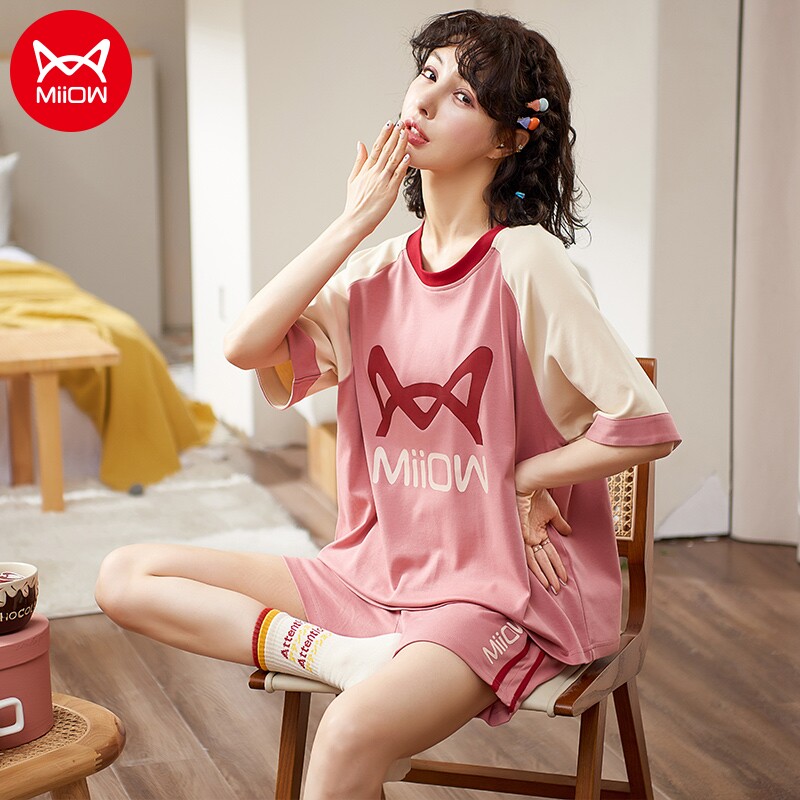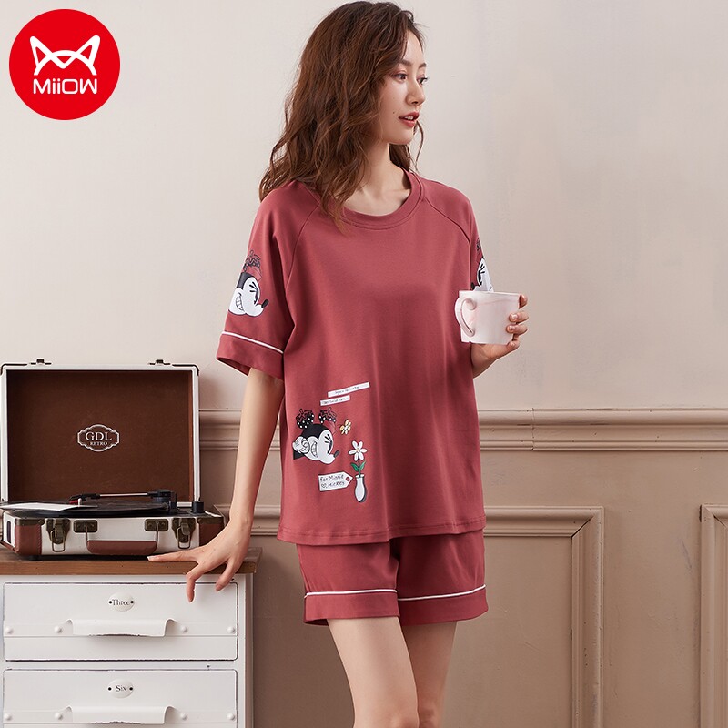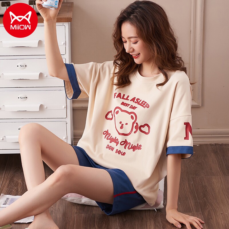Cat girl girl pajamas set pure cotton skin-friendly summer thin breathable home clothes casual loose large size outer wear