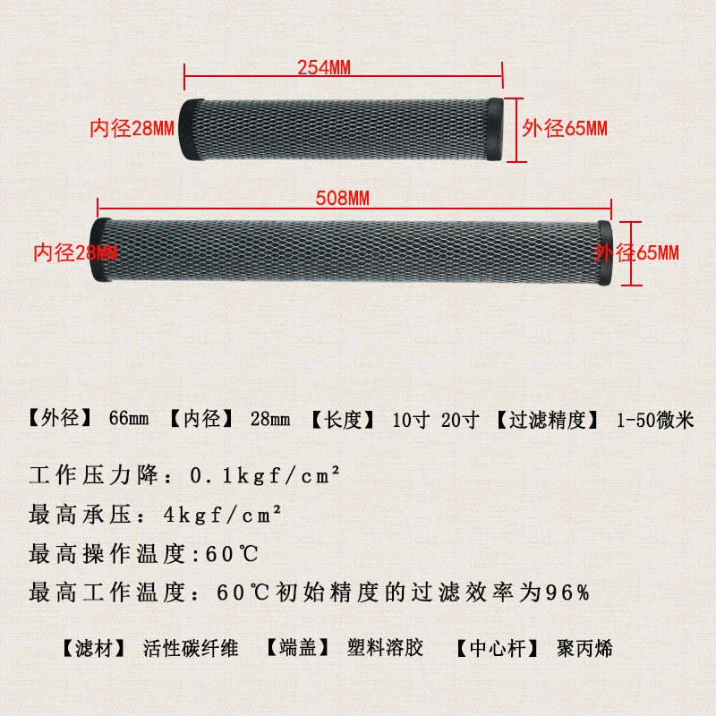 Carbon fiber filter core carbon paper fiber core electroplating filter filter filter filter rod 20 inches 40 inches 10 inches