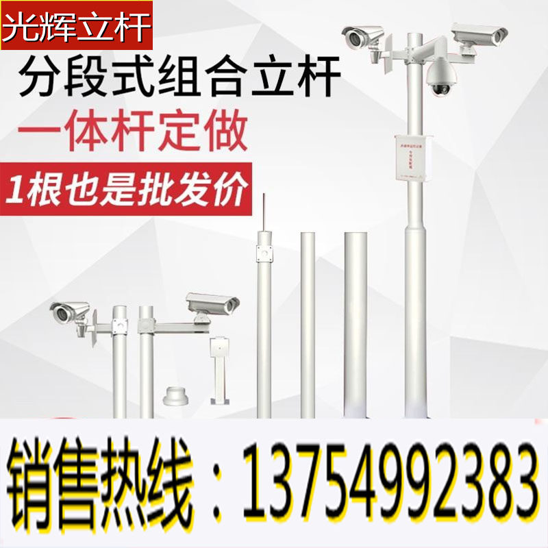 Monitoring pole segmented combination 3 meters 4 meters 5 meters 6 meters outdoor stainless steel bracket cross arm octagonal monitoring pole