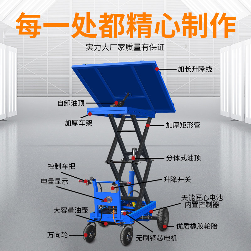 Electric hand push lift dump tipper flatbed multi-function electric feeder hydraulic small lifting platform truck