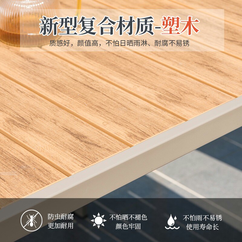 (special price iron frame) 4 chair 130x90cm large plate teak wood colour plastic wood long table (special price iron frame) 4 chair 150x90cm large plate teak wood colour plastic wood long table (special price iron frame) 6 chair