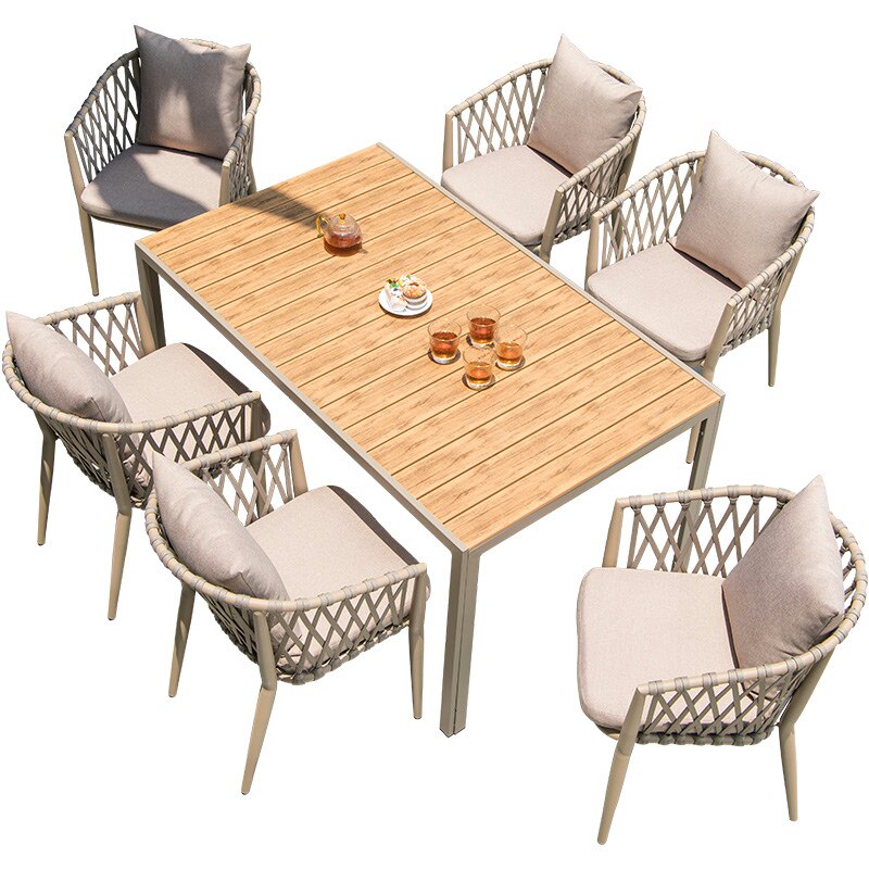 Outdoor table and chairs Courtyard Rattan outdoor Nordic Garden Waterproof Waterproof Villa Terrace Dining Chair Open Air Casual Vines-Taobao
