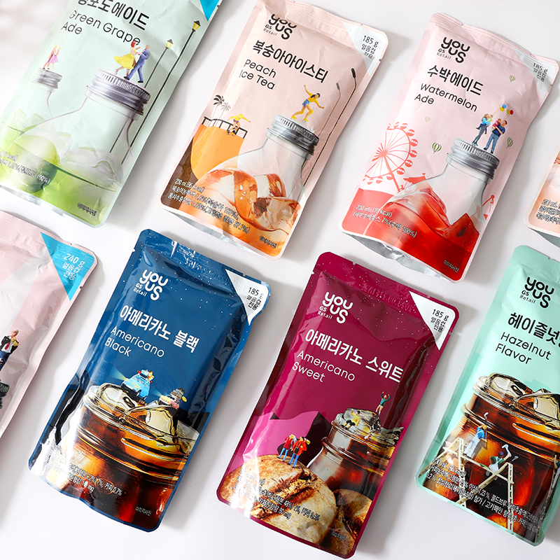 Blue grape drink 340ml grapefruit drink 340ml peach-tasted ice tea drink 230ml watermelon taste drink 230ml peach mango and Kampo tea 230ml sweet coffee