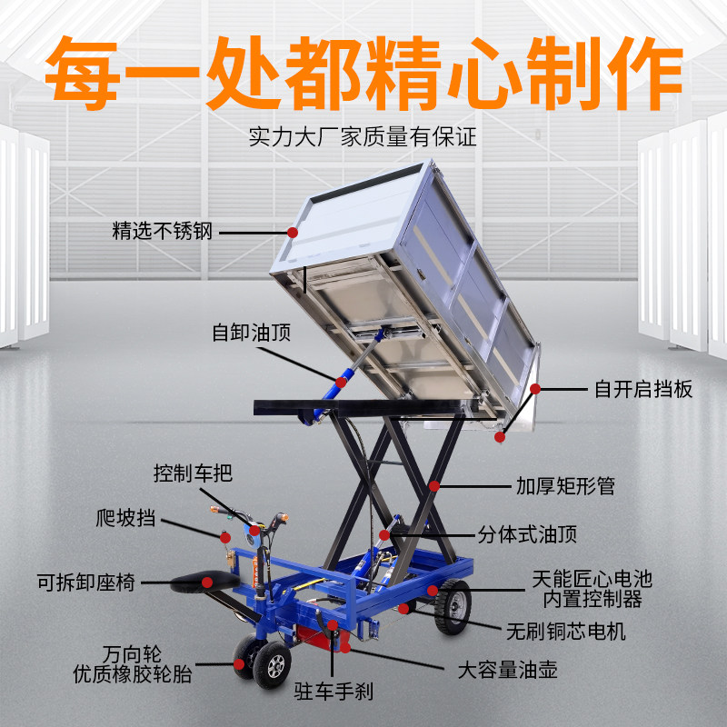 Non-standard size 70*130100*185 reverse riding up 1 2 meters self-unloading stainless steel vehicle reverse riding up 2 meters self-dumping vehicle