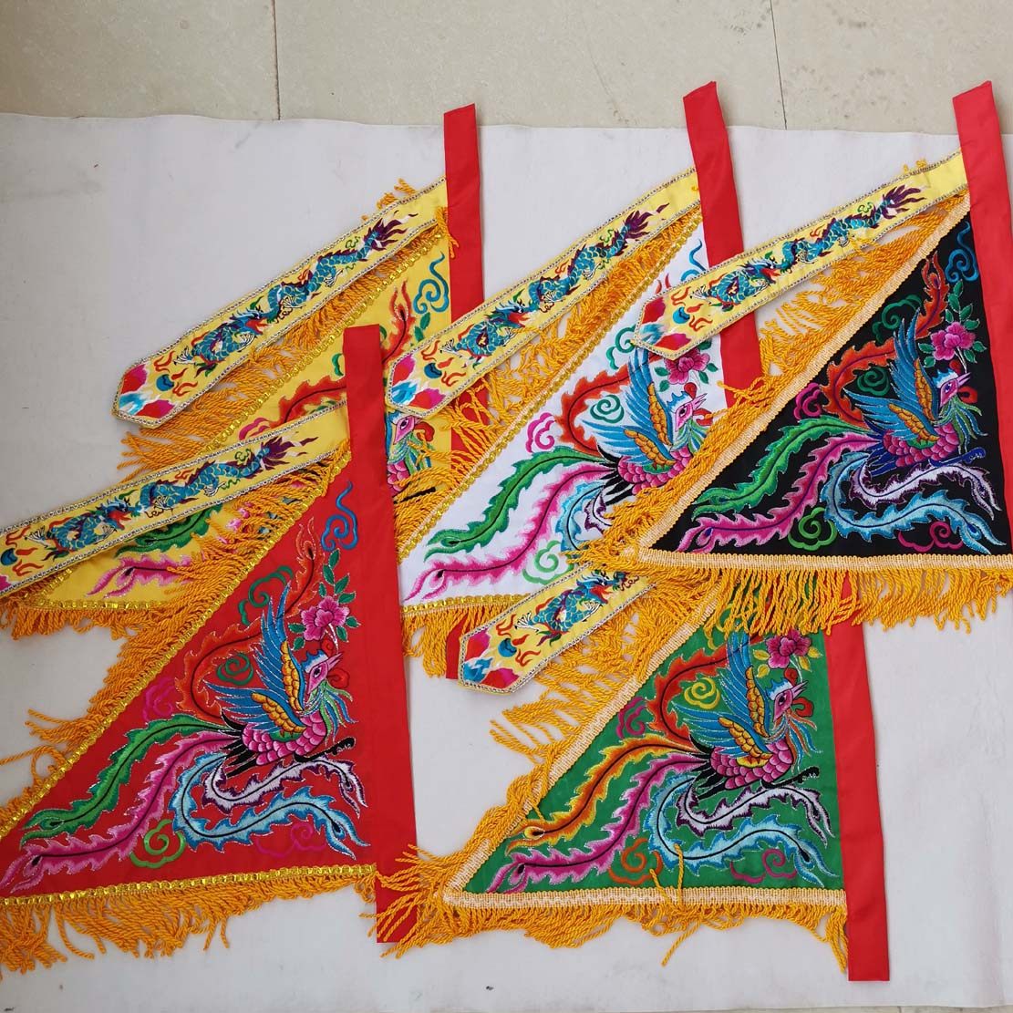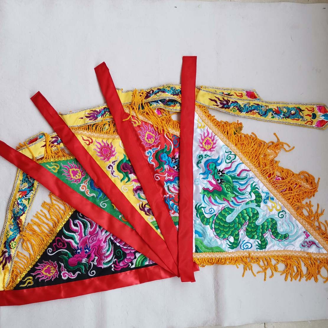 Tianlong embroidery five-color flag level embroidery triangular scale flag one side dragon one side phoenix five battalion flag five party flag colorful flag