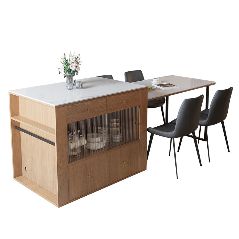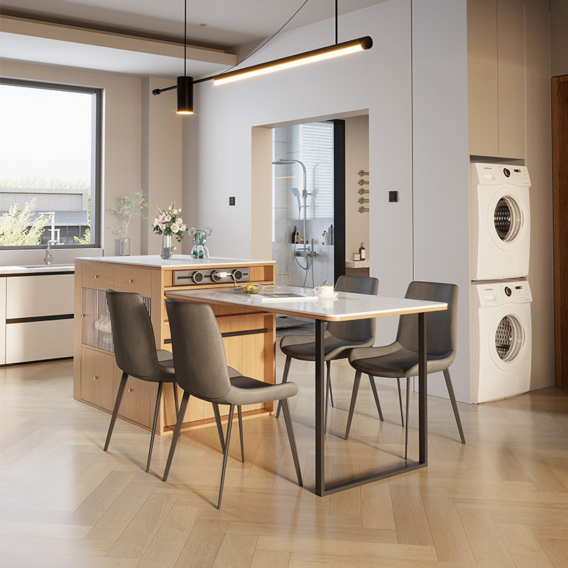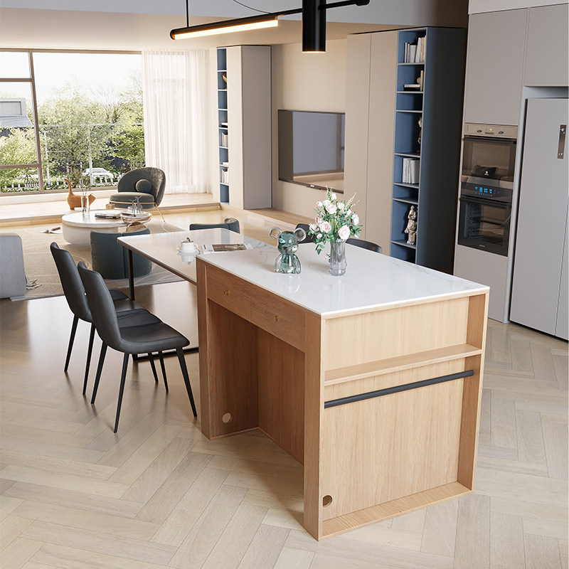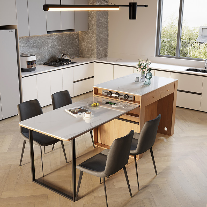Solid wood Nordic modern minimalist dining table light luxury home living room dining table integrated western dining table middle island retractable table