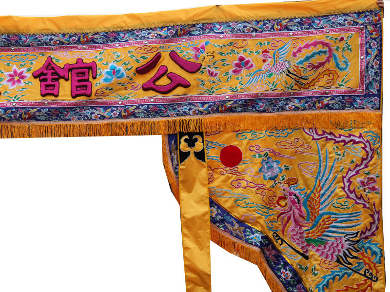 Tianlong Embroidery, Longmen God's Tent, Banner Mantle, Buddhist Hall Offerings, Double Phoenix Peony Tent Fence, Length 3 5 Meters, Height 2 Meters